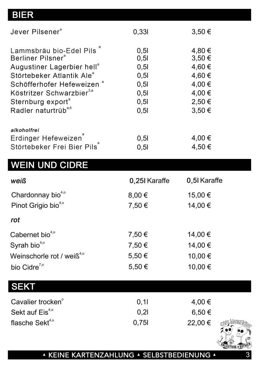 | Berliner Radler naturtrüb | 0,5l | | 3,50 € |