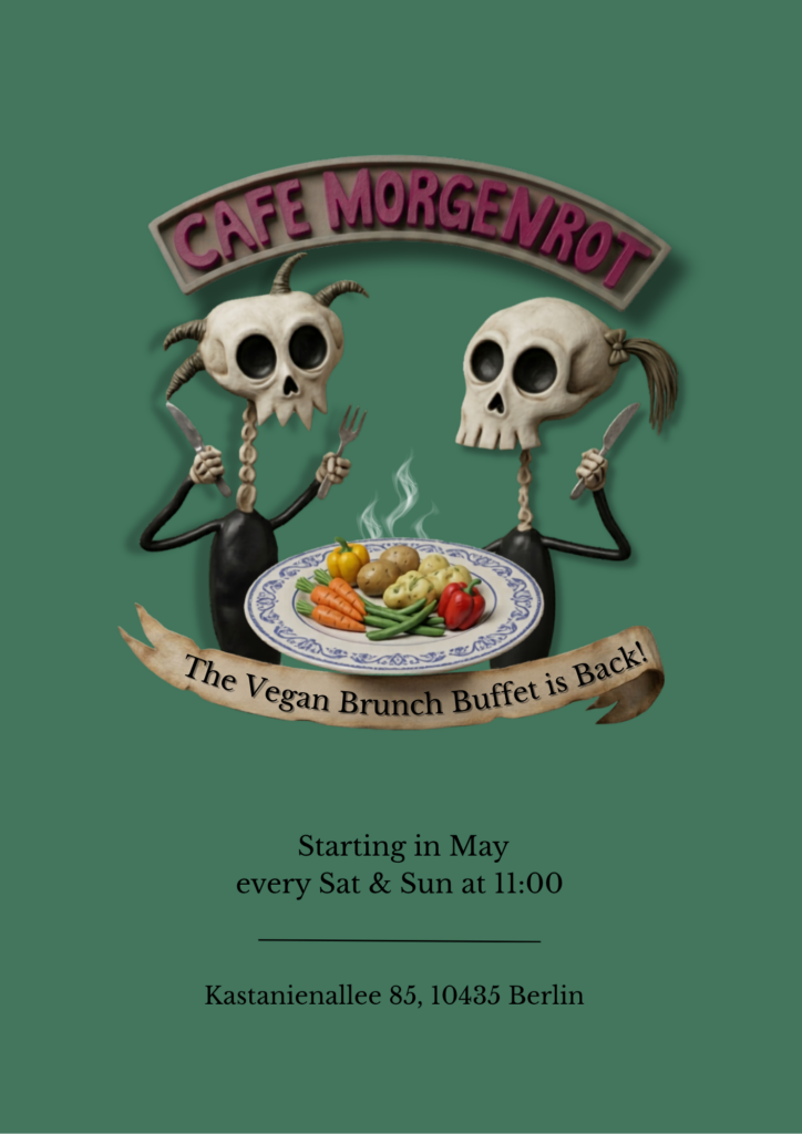 Our beloved weekend brunch buffet is back with Scrambled eggs, vegan meat, hummus, spreads, fresh fruit and vegetables, salads, grieß pudding, and much more.